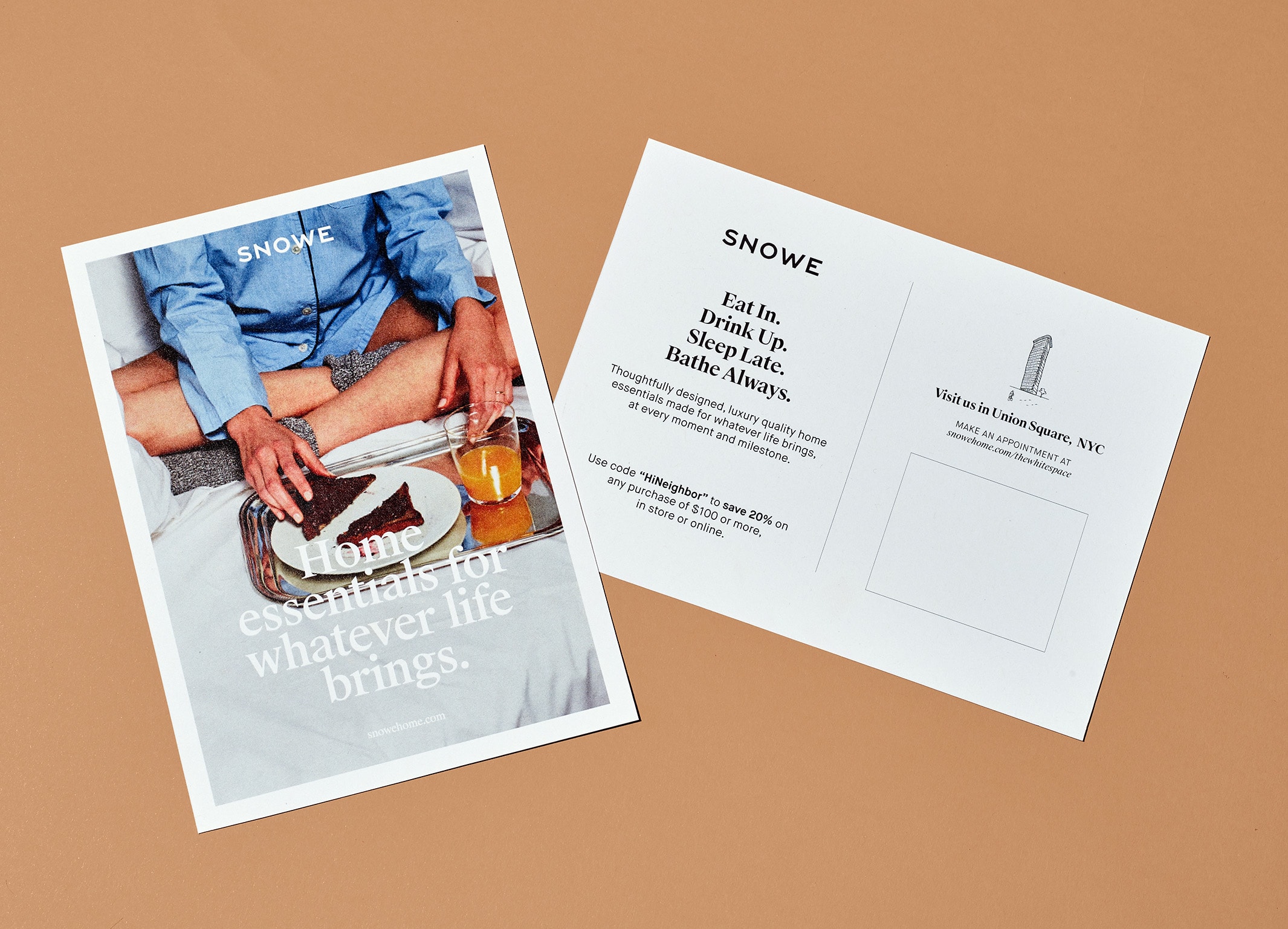 At the Whitespace, you can create a registry, shop Snowe's products for subsequent in-home delivery, see demos of product durability and touch and feel fabric swatches. We created wayfinding and take-aways that help customers browse autonomously, but with a bit of whimsy in the experience.